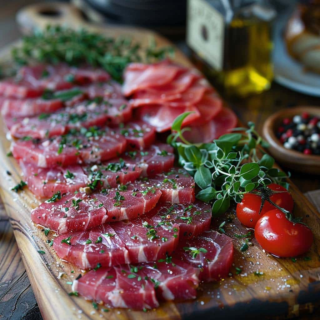 Découvrez la saveur pure et fondante de la ventrèche crue, simplement tranchée finement.